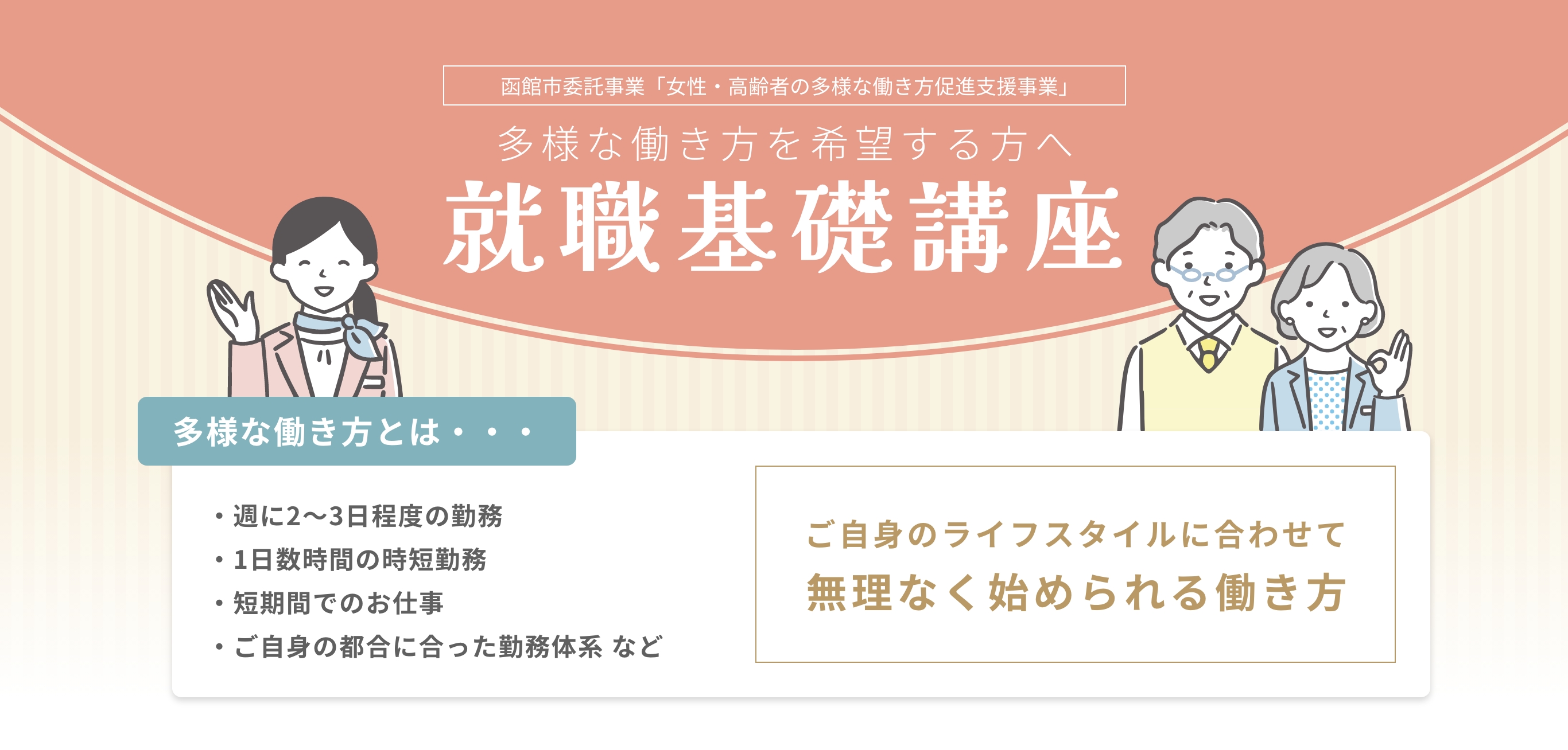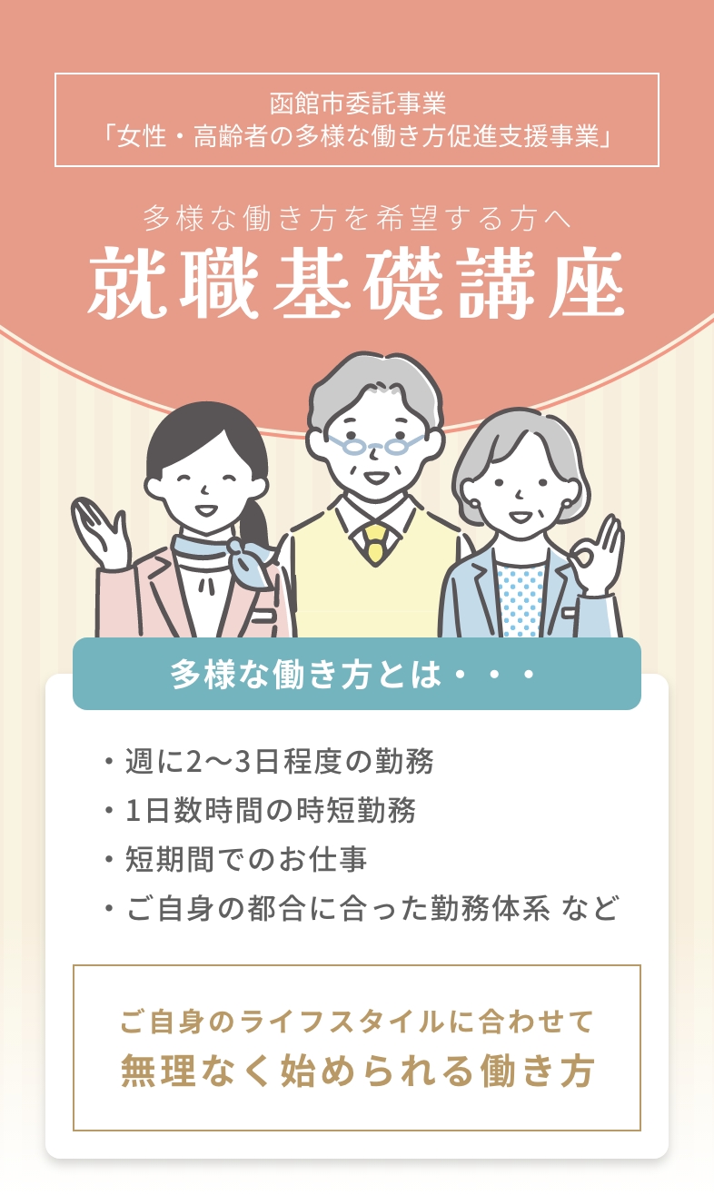 【函館市】女性・高齢者の多様な働き方促進支援事業(キャリアバンク株式会社 函館支店)〒040-0001 函館市五稜郭町1-14五稜郭114ビル 5F